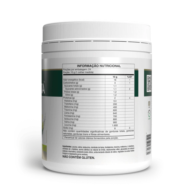 AMINOVITA é um suplemento alimentar composto por 9 aminoácidos de origem vegetal: Leucina, Valina, Isoleucina, Lisina, Fenilalanina, Treonina, Metionina, Triptofano e Histidina.