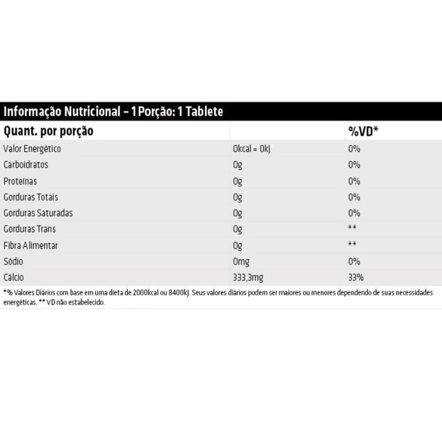 Ingredientes: Cálcio Quelato, Carbonato de Cálcio, Celulose Microcristalina, Croscarmelose e Estearato de Magnésio.
